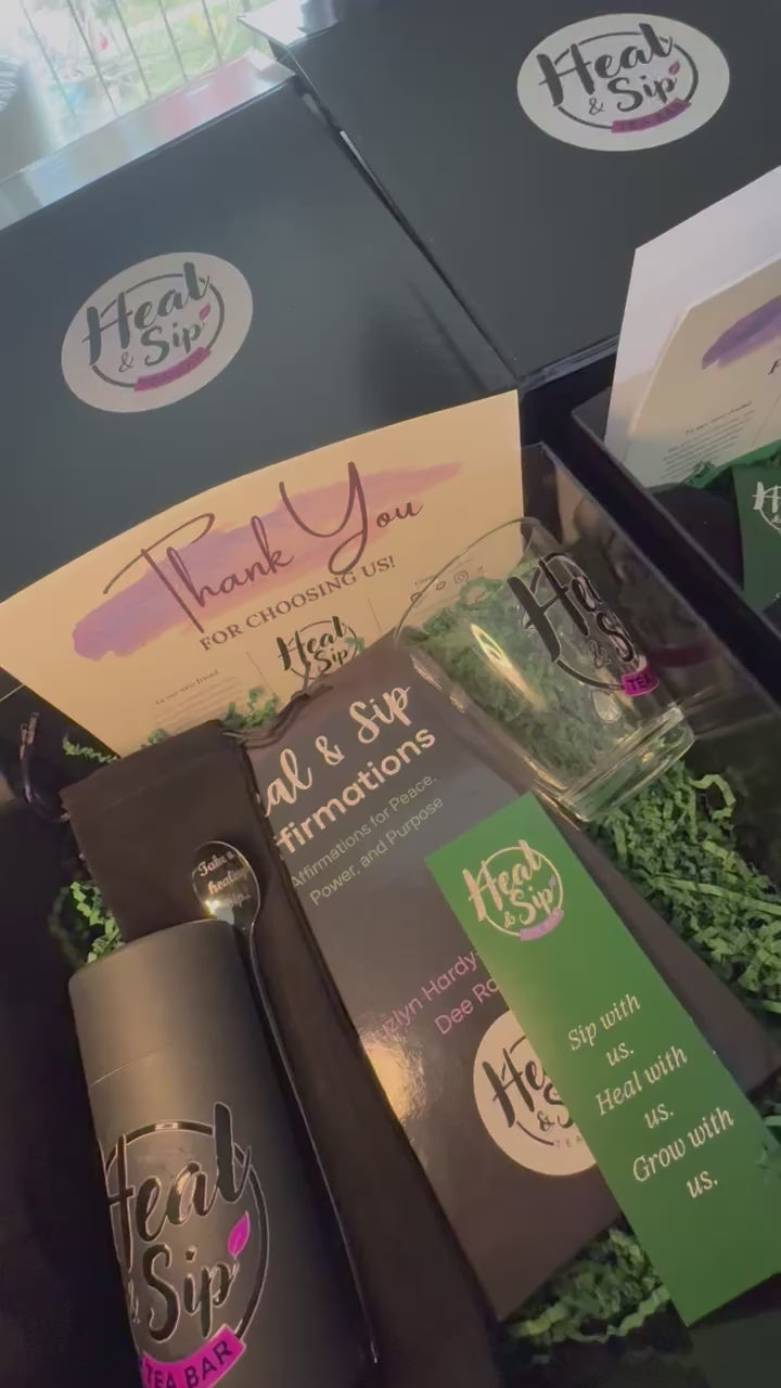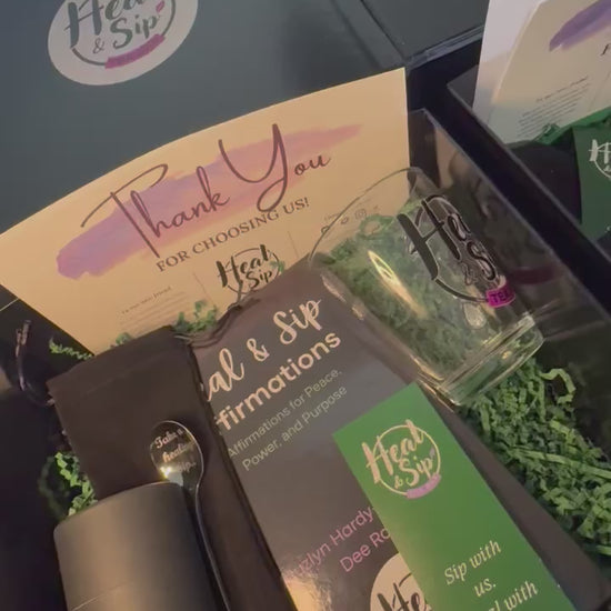 The Heal & Sip Healing Box is designed to help you slow down, reflect, and pour back into yourself.