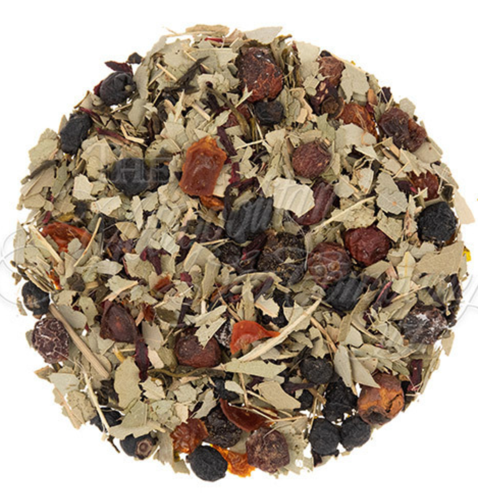 Soothe your throat with this herbal tea blend crafted to support respiratory wellness. Combining eucalyptus leaves, hawthorn, and rosehip with the tartness of blueberries and currants, this tea delivers familiar cough drop flavor notes in a comforting cup. Green tea and hibiscus add antioxidant benefits, while natural flavors round out the experience. Perfect for when you need a warm, soothing moment of self-care.